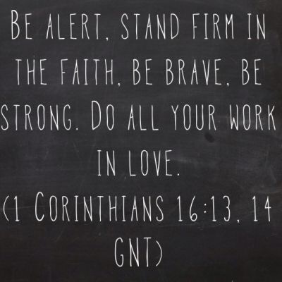 My eyes are drawn to Paul’s final exhortation located within this last chapter of 1 Corinthians instructing the Corinthians to be alert, to stand firm in the faith, to be brave, to be strong, and to do all your work in love.