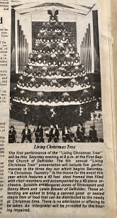 For me, the Christmas season was more than getting out of school, anticipating gifts from Santa, and listening to my dad read the Christmas story from the Bible before opening gifts each year. Christmas was about listening to an array of Christmas songs on a cassette tape, over and over again, for many months as mom prepared to sing in our church’s Living Christmas Tree program annually. In fact, the picture above was taken from one of those programs at our church decades ago, and mom can be found on the lower rows; she never liked heights!