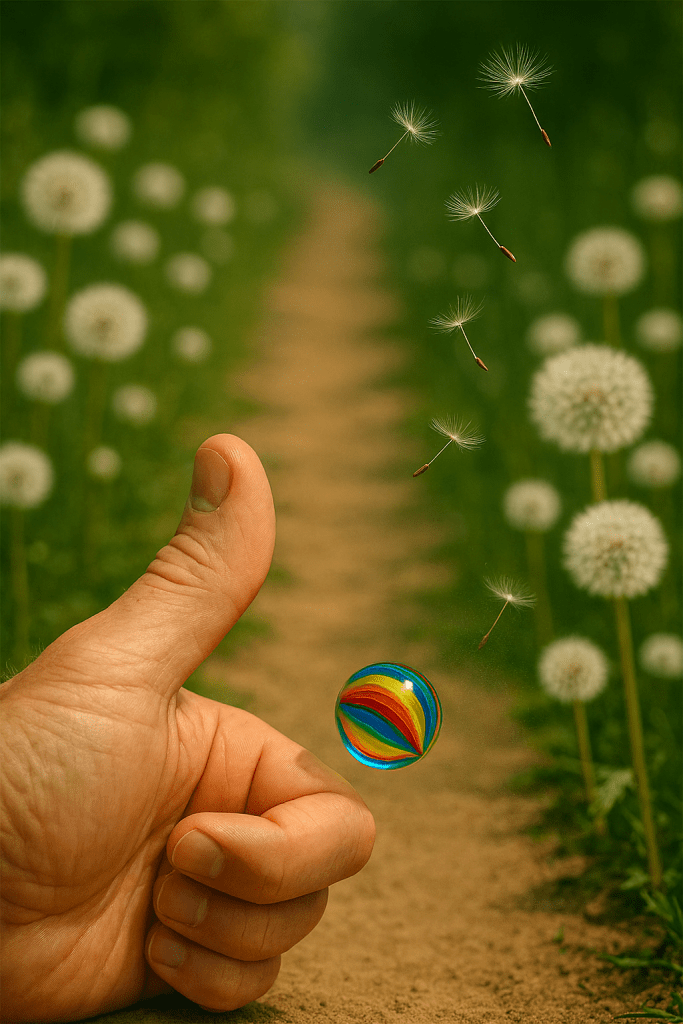 And so, as I close this journal entry, I realize that this is not a story about endings. It’s a story about release. About trusting the aim, about flicking the marble even when your hand trembles. It’s about remembering how we learned to play in the dirt with glass spheres that somehow held the weight of hope. And it’s about believing, truly believing, that love doesn’t end when the jar empties. It multiplies. Rolls forward. Finds new hands. New jars. New soil. And just maybe…[pause, breathe]…that’s how we never really say goodbye.